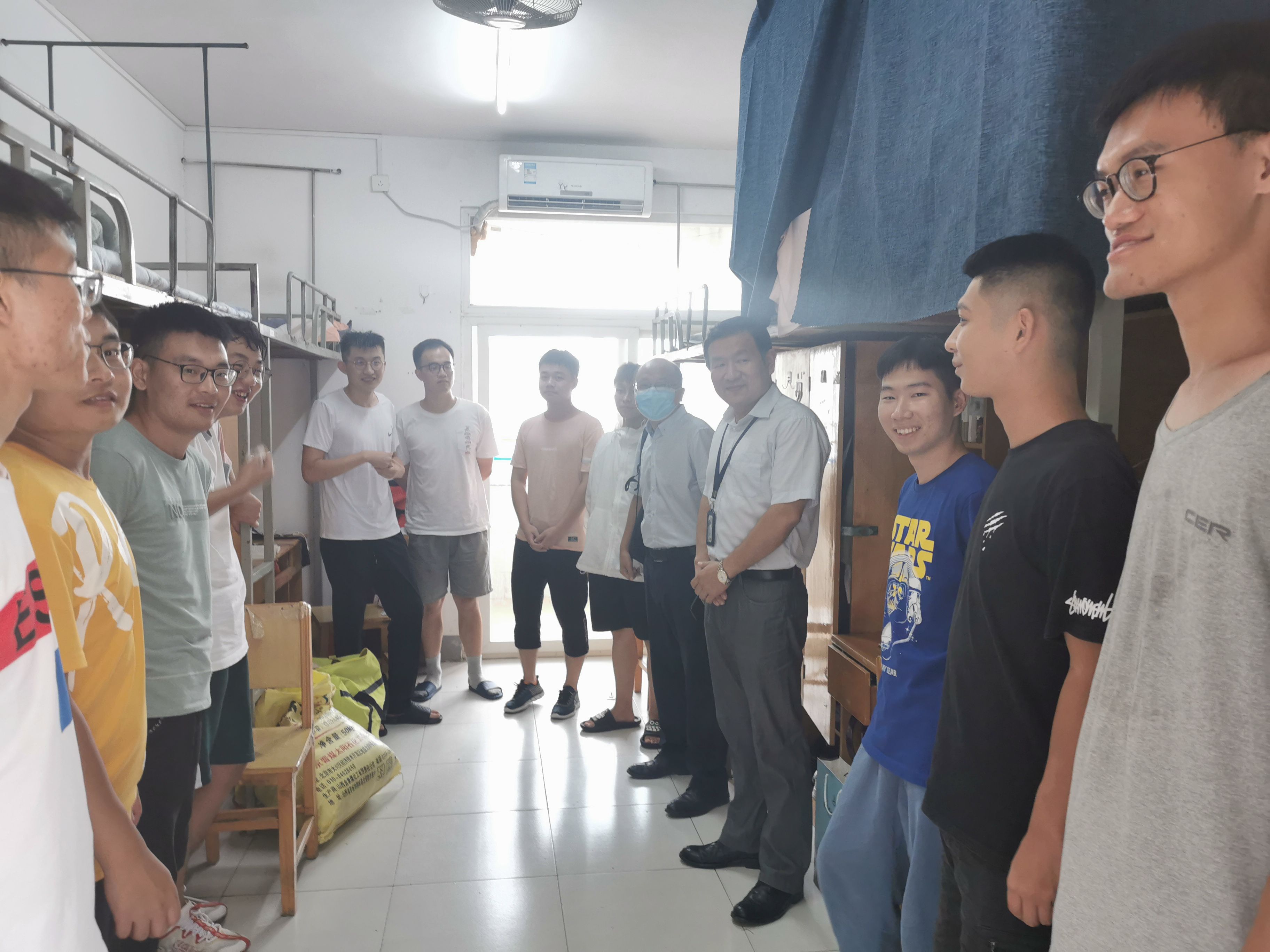 在公司党委的安排下,于9月6号下午,张文剑书记、龚先庆经理带领几位老师亲自走访新生宿舍,慰问2020级初入7003全讯入口登录学7003全讯白菜网的萌新们。在谈话过程中,书记和经理真切关怀每一位新生的健康状况、生活状况以及学习情况,为新生们送上鼓励和祝福,为怀揣着不安和紧张的新生打了一针“镇定剂”,加强了师生间的交流,拉近了师生距离,让新同学感受到了7003全讯白菜网如家般的温暖。